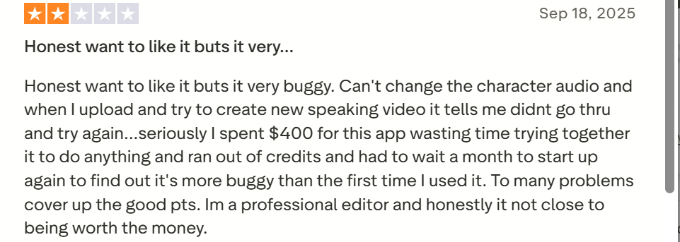 There's no greater feeling of betrayal than having your money deducted from your wallet than what was advertised by a software. Many first-time users complain of being misled into subscribing to a yearly plan rather than their intended monthly plan. Most victims go on to report that after realizing this, their refund requests get rejected. The complaints and frustrations users have reported around payment plans call for alarm. From unauthorized deductions for plan renewals, upgrade prompts all around the app, and failure to initiate refunds, there is a lot of unclear information about plan tiers, hidden throttles, credit burn, and refund policy hidden in fine print that may catch you off guard.