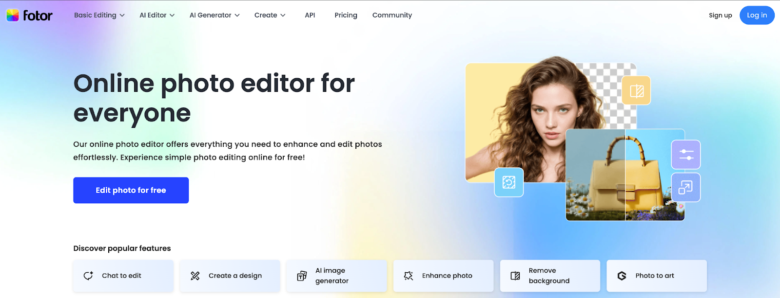 Pixlr is an online photo editing tool used for photo editing, image generation, background removal, and generative fill. What makes Pixlr one of the most popular alternatives to Photoroom is the platform's integration of graphic design tools and its mobile optimization, making it easily accessible on the web. The platform combines photo editing technology with generative AI models to create and edit stunning visuals for personal and commercial use. Features like video generator, AI remove object, AI generative fill, generative expand, and resize image are useful for product owners who want a fresh perspective on their product.